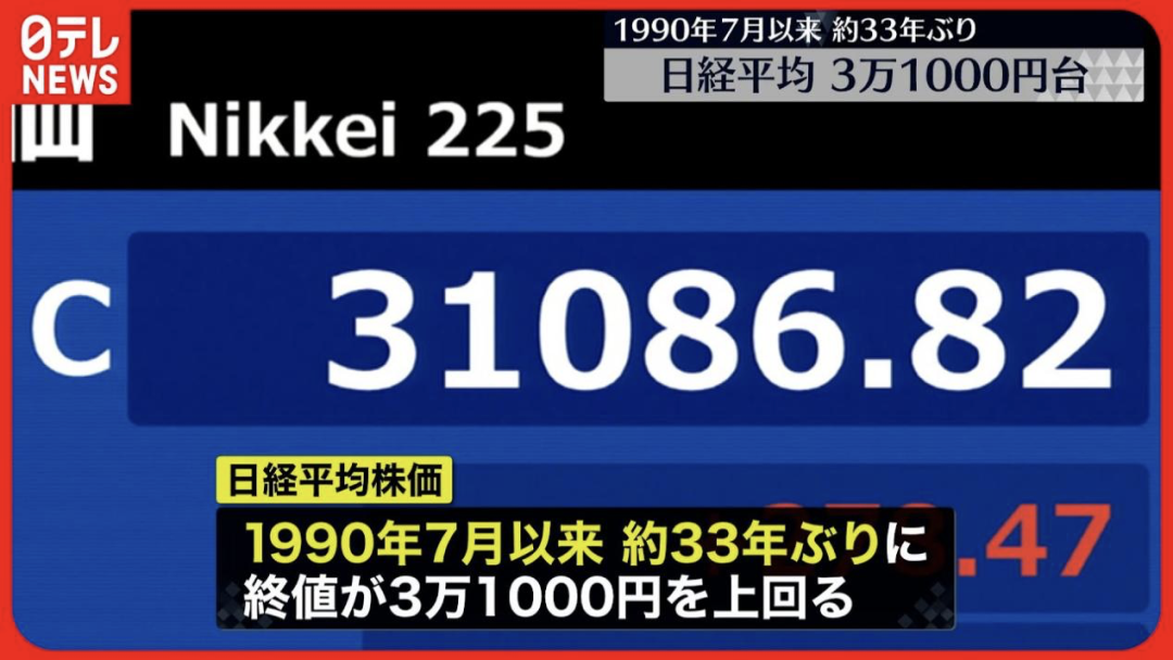 漲勢如虹的日本股市與GDP數據交相輝映,截至5月22日,日經指數年內錄得漲幅19%,收31086.82點,自1990年7月以來首次突破31000點大關。