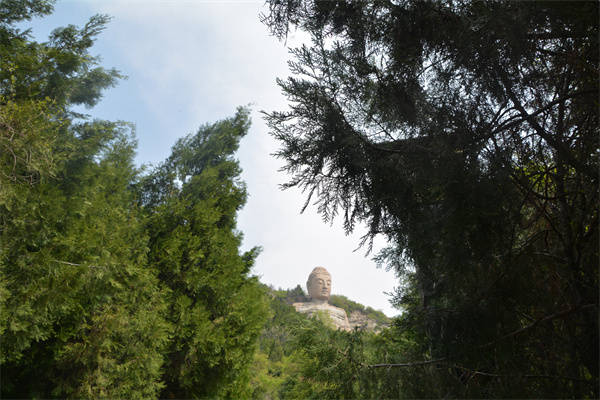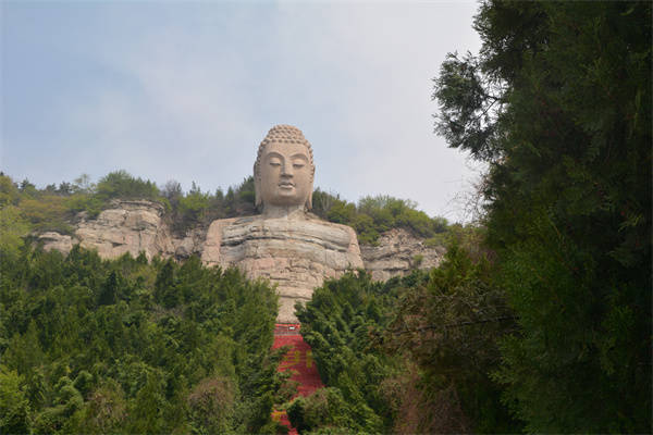 蒙山景區大佛開鑿於南北朝北齊天保二年,即公元551年。由文宣帝高洋開始歷經5位皇帝,24年鑿成。《北齊書》對當時鑿佛有記載雲:“鑿晉陽西山大佛像,一夜燃油萬盆,光照宮內。夜則以火照作,寒則以湯為泥”可見鑿佛時的盛景和鑿成後的轟動。史書記載蒙山大佛像高二百尺,也就是63米。坐北朝南,背山面水,左青龍,右白虎,位置極佳。大佛為結跏趺式釋迦牟尼坐像,高63米,開鑿於北齊天保二年,是有確切紀年,開鑿最早的摩崖石刻佛像,比著名的樂山大佛還要早162年。