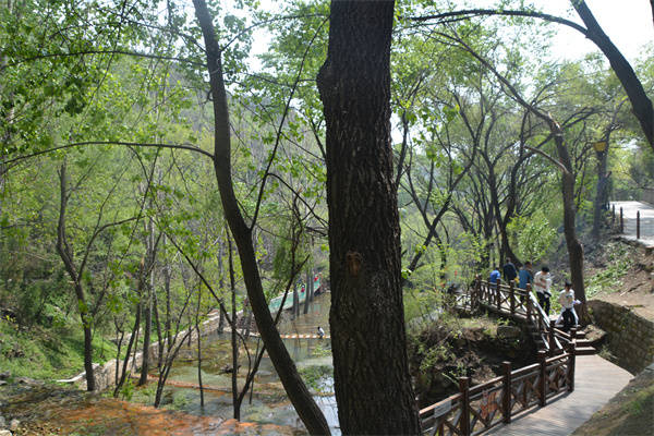 沿着碧波盪漾的湖面轉換視角,在瀑布的上游,呈現出荷葉清潭,怪石聳立,平湖倒影的優美景緻,空氣尤為清新。沿着潺潺的溪流,順着景觀石階,穿過觀音堂與園子溝,一品蒙山,漫步在松林中的石階路面,留戀於淨池間。
