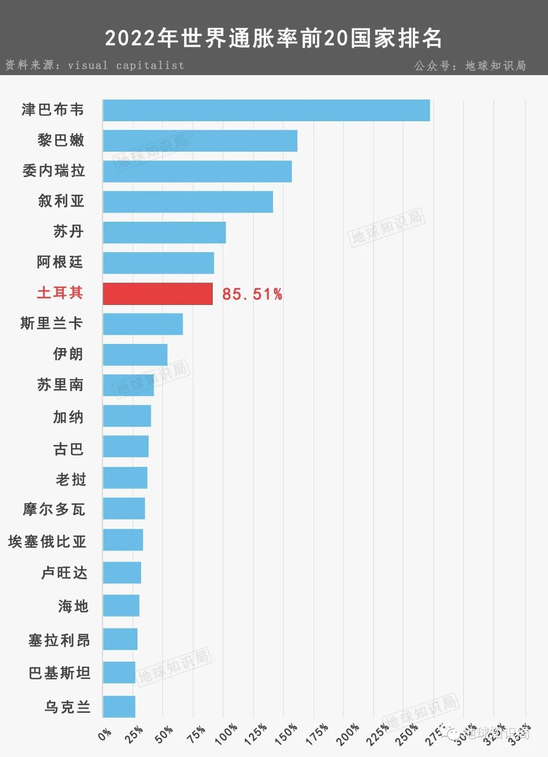 在評價一個國家的通脹率時,我們通常認為3%以下是較為平穩和正常的數據,超過5%就會對居民生活成本產生較為明顯的影響,達到10%左右時底層的生活就將難以為繼,而土耳其的通脹則已經遠超這個級別,達到了堪稱魔幻的程度。