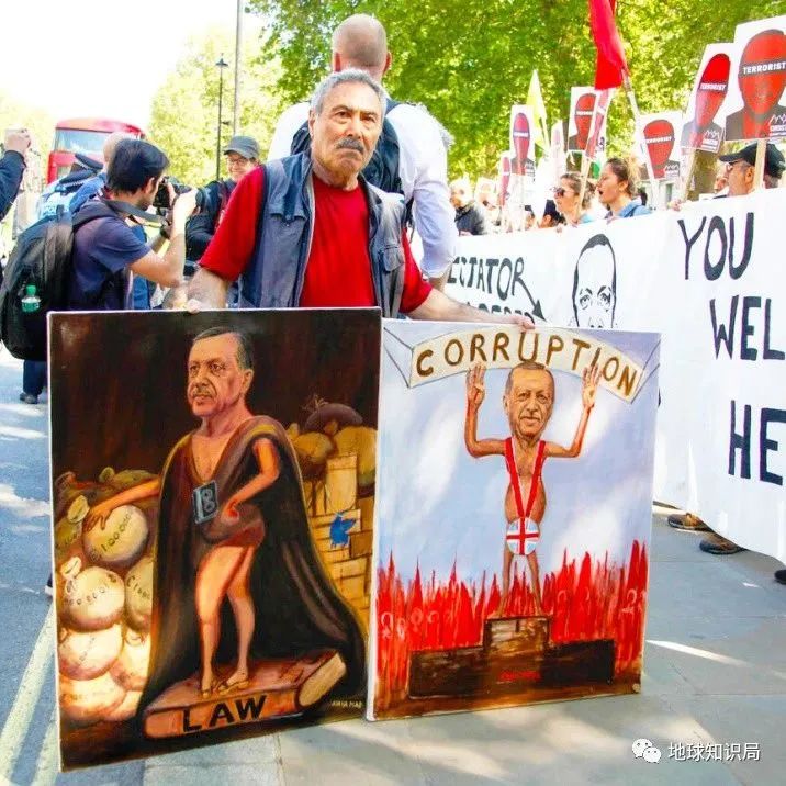 (倫敦街頭抗議埃爾多安的人羣,圖:壹圖網)▼