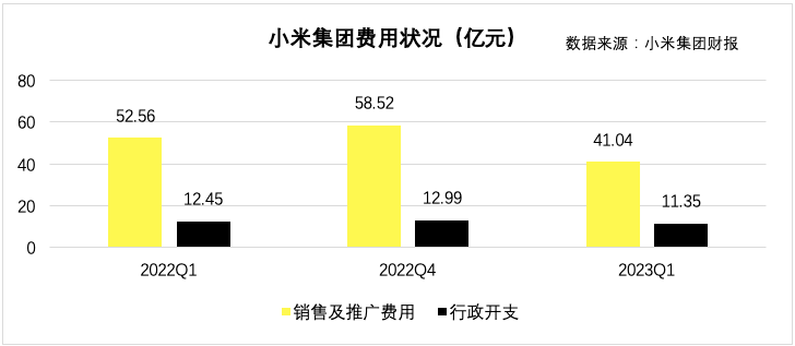 財報顯示,2023年一季度,其大幅削減宣傳、包裝、運輸等開支,使銷售及推廣費用同比減少21.88%,環比減少29.94億元,為41.04億元,是自2020年第四季度以來的最低水平;同期,行政開支由於薪酬和專業服務費減少了1億元至11.35億元。