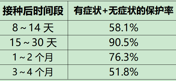 這個觀察期內,我國流行的新冠毒株主要是奧密克戎BA.5、BF.7 和 XBB。接種後2周內安諾能4的保護率為58%,3~4周的保護率為91%,1~2個月的保護率為76%,3~4個月為52%。
