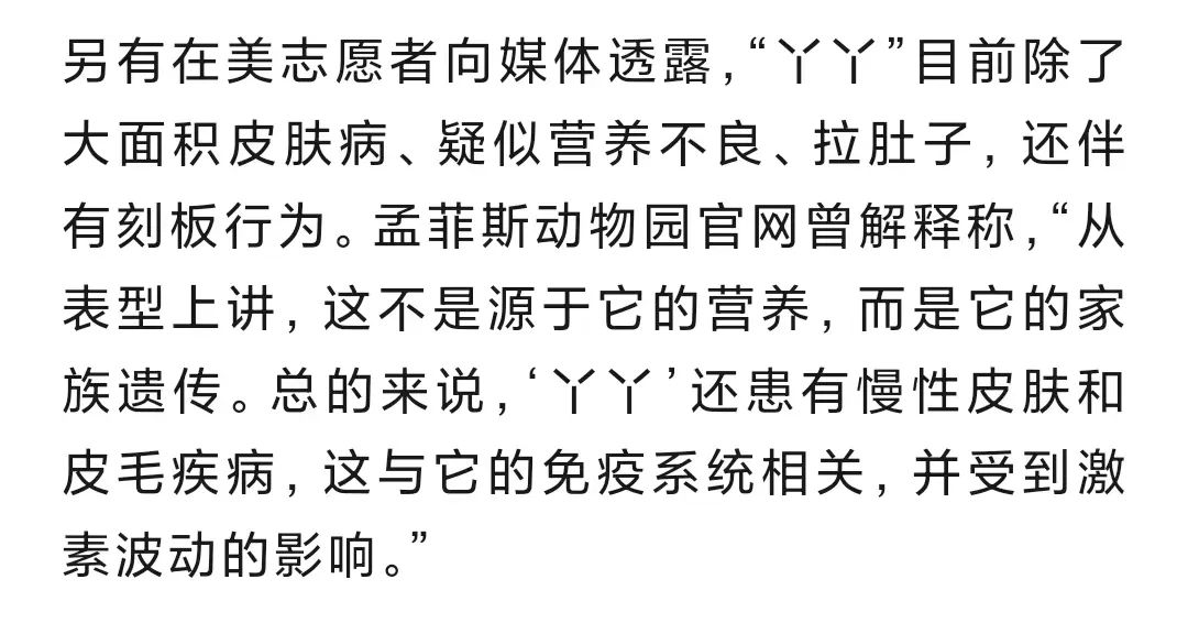 針對“丫丫”高齡、生活環境變化
