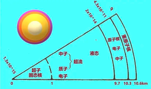 物理學家認為中子星有點像雞蛋,有殼(外殼)、外核(蛋清)和內核(蛋黃)。外殼由鐵核組成,因為鐵這種元素是核聚變過程的終點。如果向中子星的內層走,壓力不斷增加。核子(即質子和中子)會被緊緊壓在一起,使它們變成奇怪的形狀。物理學家稱這個區域為“核麪糰”。