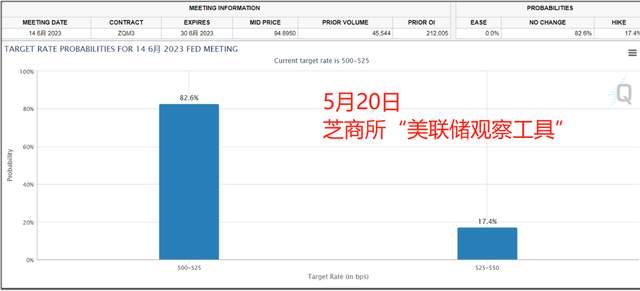 5月20日的時候,市場對6月不加息的預期概率還高達82.6%。
