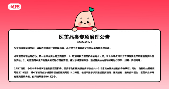 在嚴格治理下,關停賬號16.8萬個,撤下了27.9萬篇筆記,並順便撤銷了所有私立醫美醫院的認證。