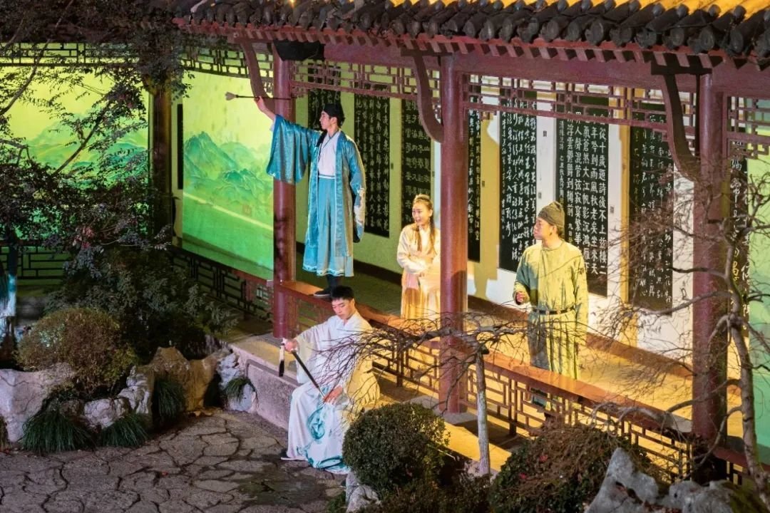 黃鶴樓裏,身着古裝的NPC們每晚循環演繹古人情思。(圖/夜上黃鶴樓)