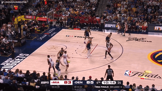 掘金叫了暫停後防守外擴,但阿德巴約立刻一個面筐突破讓熱追到66平;接下來便是約基奇時刻:第三節最後掘金的進攻純是約基奇生吞澤勒所為,單節轟下18分,掘金得以83比75領先。此時約基奇下場,大概,“我給你們弄了8分領先,你們怎麼也能讓我歇個4分鐘吧?”