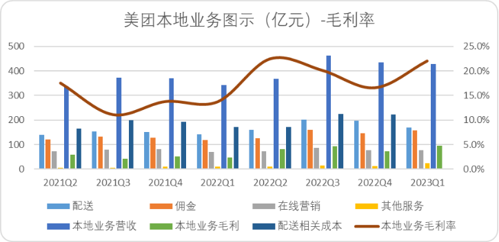 這樣的現象,我們通常會用一般視角去解釋:即,收入增長攤薄成本。但之於美團而言,這一邏輯並不嚴謹,比如2022Q4美團的收入遠高於2022Q2的收入,但是毛利率卻出現了明顯的下滑。