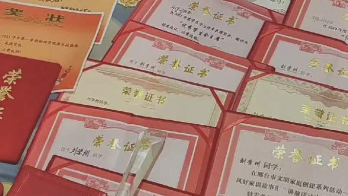 劉學州在社交媒體上曬出志願者證書、獎狀。