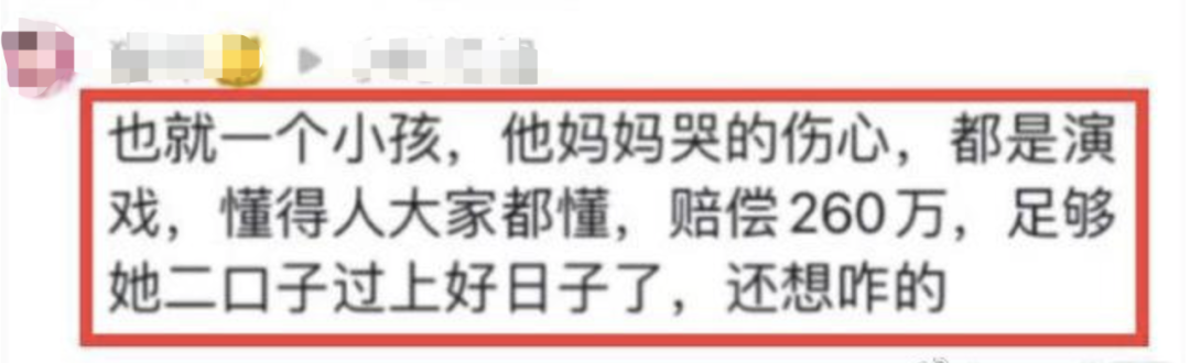 理由是:“妝容這麼精緻,還穿着肉絲”,“竟然沒有失聲痛哭,説話這麼有條理”,“就是準備來訛錢的吧”,“是不是要準備開直播帶貨了”。