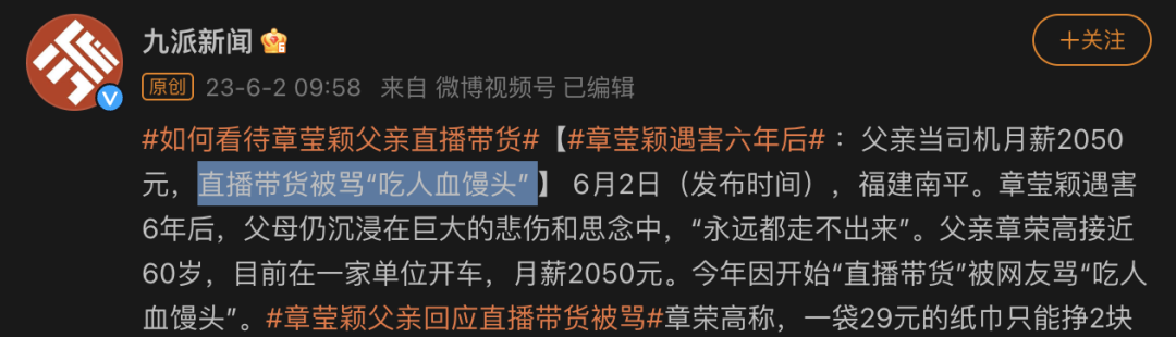 章瑩穎遇害六年後,章瑩穎的父親遭遇網暴,原因是他開了直播。