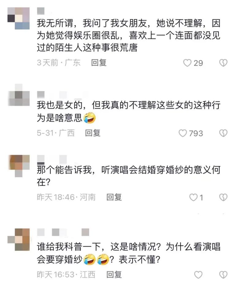 然而,也有人不理解粉絲穿婚紗去明星演唱會的行為。