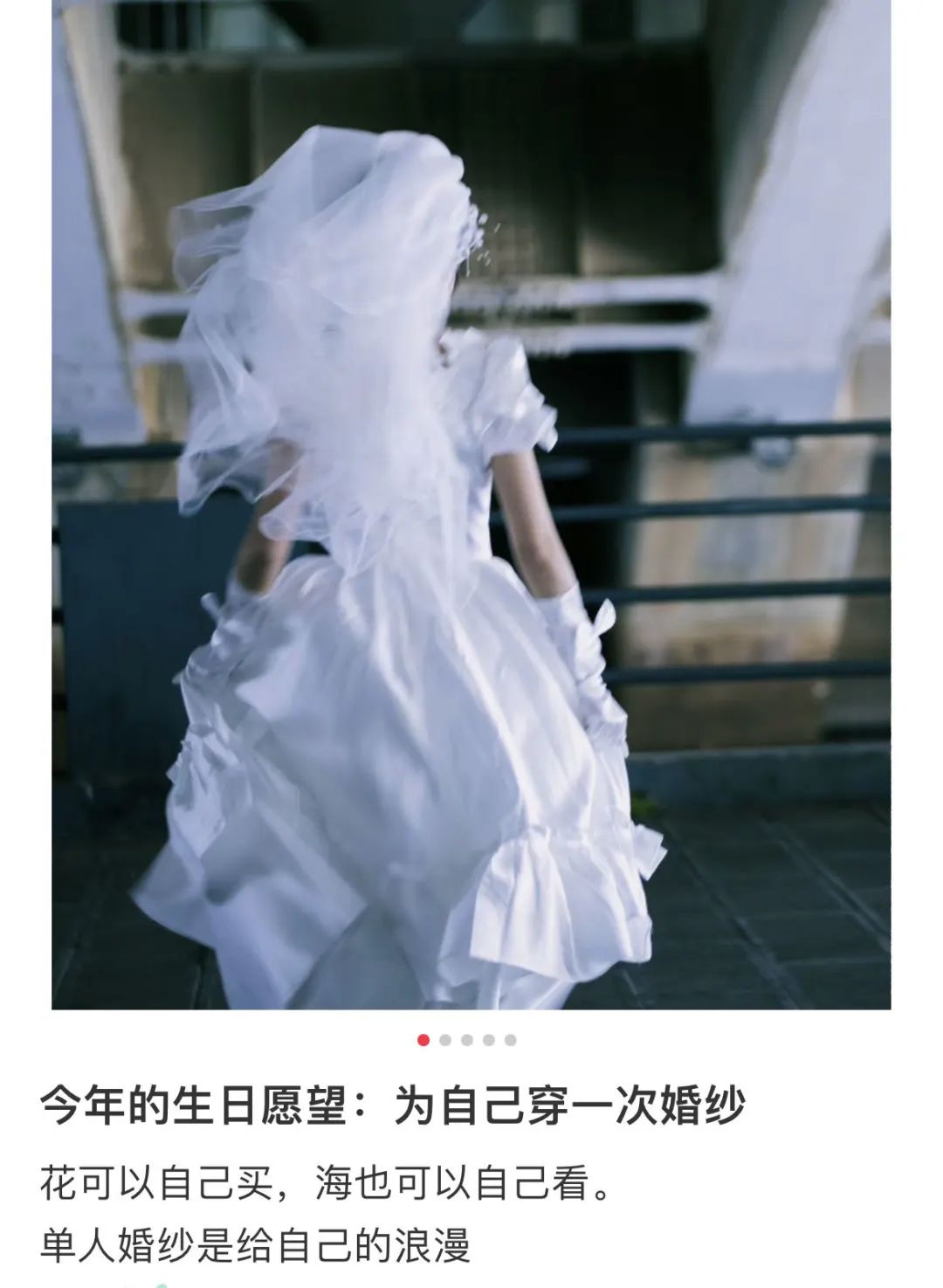 她穿婚紗,是為了給自己拍攝一組生日寫真;