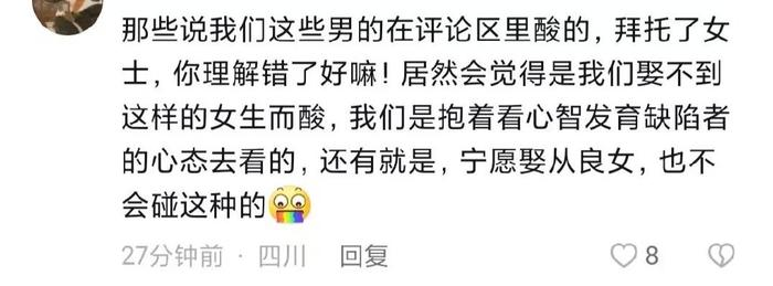 種種言論,直接把自己擺到了挑選者的高位,彷彿所有女孩都在排着隊等他臨幸,他的“重大決策”能讓女孩們寢食難安,一句“嫁不出去”就是最惡毒的詛咒。