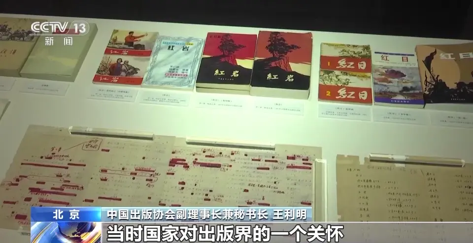 中國出版協會副理事長兼秘書長 王利明:《紅巖》這個版本可以體現當時國家對出版界的關懷,也對讀者的關懷。《紅巖》這裏展出了農村版和原版,《紅巖》正式版定價是1塊7毛6,《紅巖》的農村版定價是7毛5分,定價就差了一倍多,就是向農民來普及優秀讀物,實際上這八本書都有農村版。