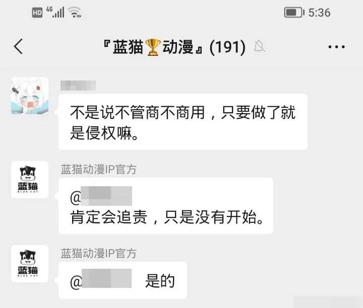 然而官方越努力,顯得越心酸。雖然眾籌手辦在B站、微博都進行了宣傳,但銷量慘淡,支持人數僅7人,初定的30萬元目標金額,只完成了0.67%。除了質量、價格因素外,五月初藍貓粉絲羣裏關於“禁二創”的聊天記錄截圖被掛至空間、微博,官方就此事回覆粉絲時的用語與態度,則是粉絲不想支持童年情懷的另一個原因。