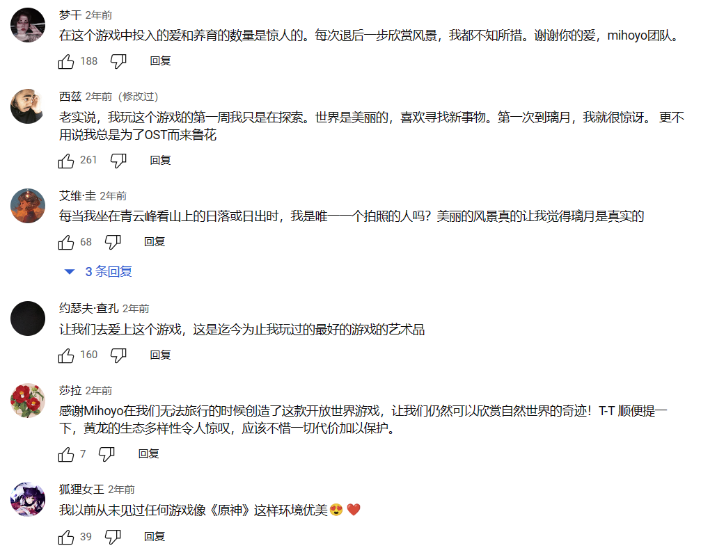 米哈遊將現實美景“移植”進遊戲世界,用數字技術演繹非遺文化。一方面通過對中國文化的創造性轉化,促進了中國文化與世界文化的交流,彰顯了中國傳統文化的獨特魅力;另一方面,米哈遊對於各國文化的深入理解與思考,不僅拓展了作品的靈感來源,也賦予了作品以深厚的文化內涵,使之更加鮮活,成為了中國玩家與世界各國玩家溝通交流、建立友誼的契機。