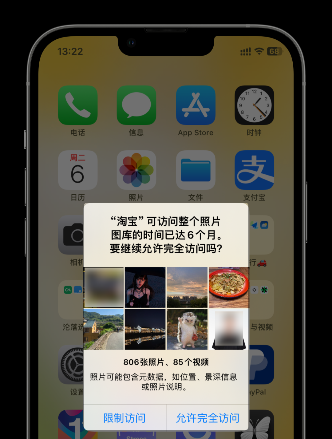 比如用着用着,系統突然提示我「 淘寶能訪問我全部照片已經 6 個月了 」,還要繼續麼。