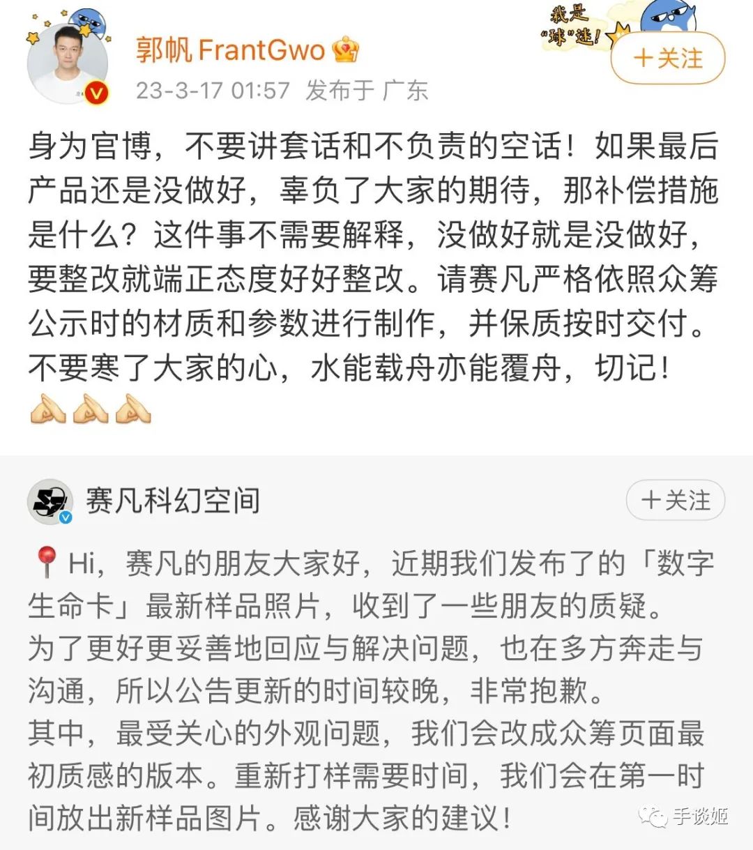 當然了,大家知道,周邊商品在做工上並不能和主流商品相提並論,而網絡也會放大有關對商品的差評。但賽凡的種種操作,可能確實挺讓部分購買周邊的粉絲難過的,本來眾籌一億是一件挺有面子的事情,現在卻要時時擔心自己是否被坑。