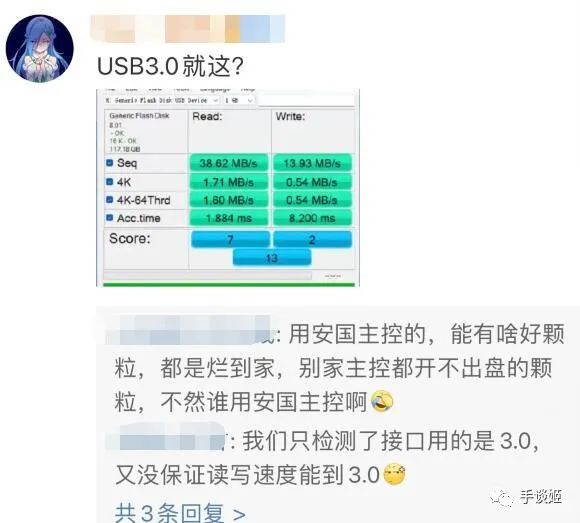 如果説上述還涉及到一些材料學知識,不太好分辨的話,那麼説好是usb3.0的讀卡器部分,卻被閹割成了usb2.0就説不過去了。
