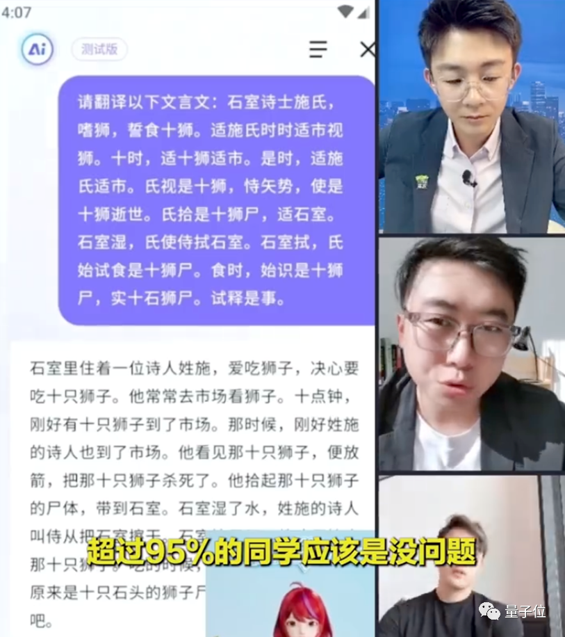 緊接着,AI夥伴展現的文言文理解能力,更是把資深老師嚇了一跳: