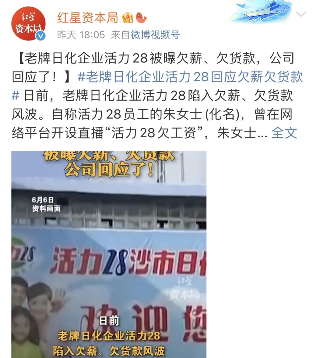 最近,多名網友爆料,日化老字號活力28從今年2月開始拖欠工資,足足欠了3000萬。