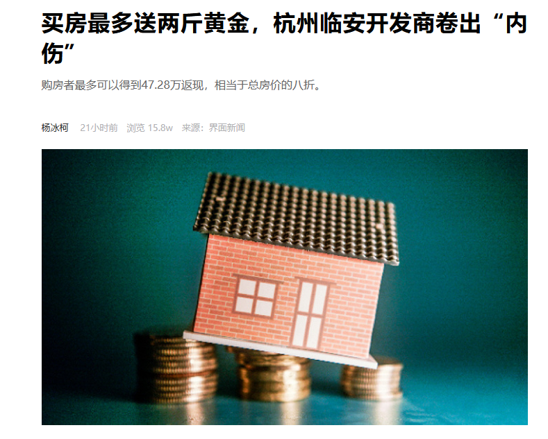 杭州有樓盤買房最多送兩斤黃金,摺合47.28萬返現,開發商內卷會成常態嗎?_風聞
