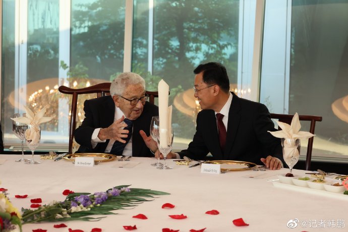我看他經常發一些在美工作照、生活照,包括與基辛格慶祝100歲生日。