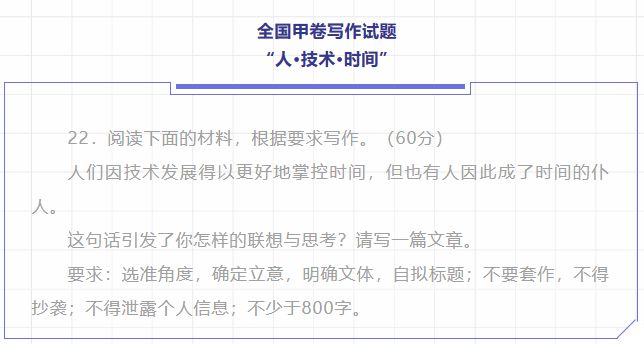 當然,這一輪還是有個沒有押中的,就是針對西南省份,寫作門檻最低的全國甲卷,內容是“人 技術 時間”。