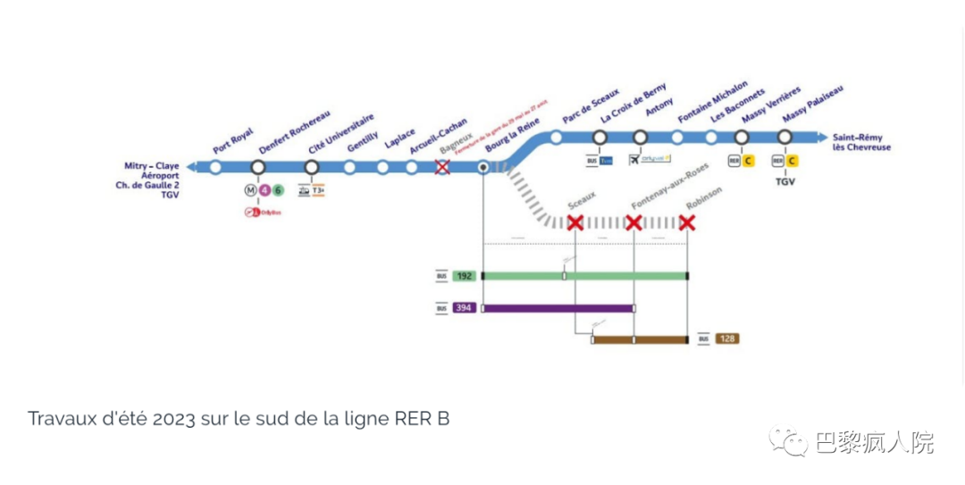 👉7月22日到8月25日期間:Bourg-la-Reine和Robinson之間關閉;
