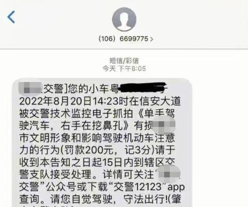 廣東某市的一位小車司機,因為被攝像頭抓拍到挖鼻孔,被罰了200元;