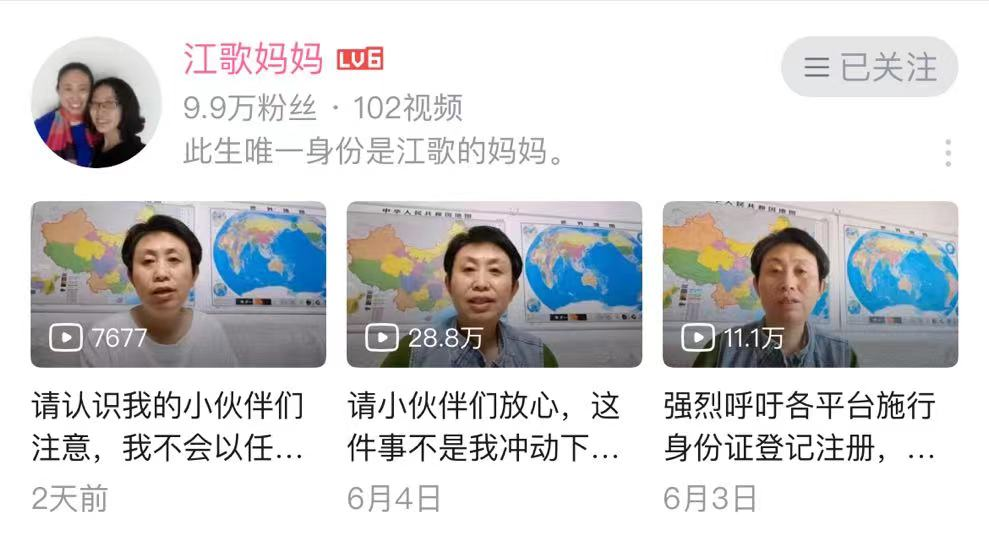 在b站,江母的自我介紹是“此生唯一的身份是江歌媽媽”。