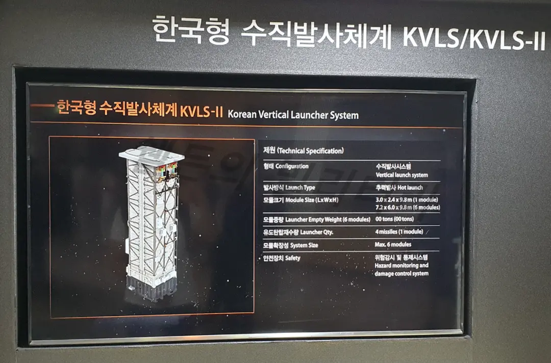據稱,K-VLSII的發射單元面積相比K-VLS增加了80%,安裝深度增加了20%,承載重量增加了85%,可承受的排焰強度提高了35%,看起來這是一種類似於國產“850大坑”的新一代通用垂直髮射系統。據説韓國最新下水的KDX-III BatchII“正祖大王”號驅逐艦就安裝有部分K-VLSII型垂髮,具體技術性能依然不得而知,但基本形成了韓國大型主力艦K-VLS和K-VLSII同時裝艦的設計風格,這在“武庫艦”上得到了沿用。