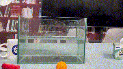 動圖四可以看到,輕的乒乓球被水花一下子抬了非常高的高度。
