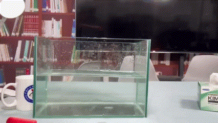 將小石板和乒乓球摞在一起,然後一起做自由落體運動落入水中,觀察。