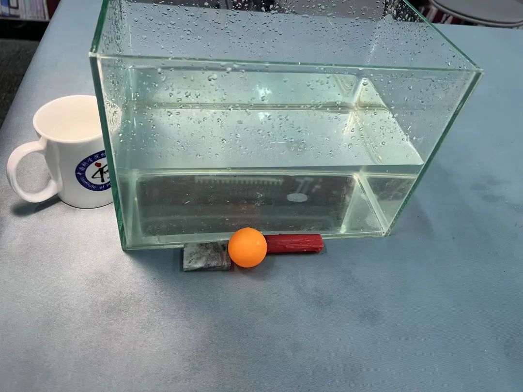 蠟燭,小石板,乒乓球,水箱。(實驗材料的形狀最好不同)