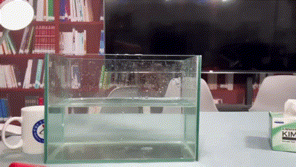 讓小石板也做自由落體運動落入水中,觀察水花。