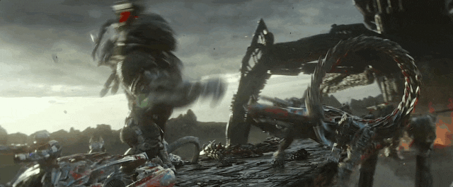 以至於前幾部《變形金剛》裏,在這些熟悉的人物身上,已經很難再發掘出什麼新鮮感,於是只好變成越來越誇張的視覺轟炸。