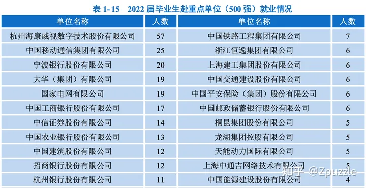 那麼,對於學生來説,如果自己的分數只夠報考雙非院校,在選擇專業的時候,我有一個建議,就是請直接搜索目標院校的就業質量報告,然後找到該學校就業去向最多的企業名單。如浙江理工大學2022年的就業去向裏最多的是: