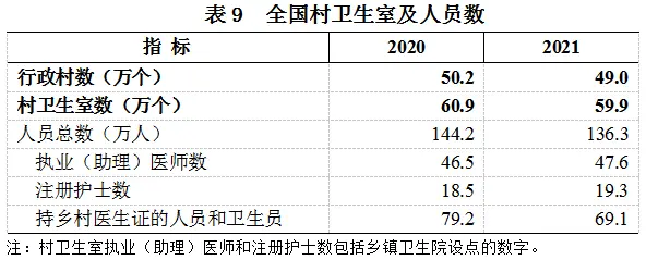 截至2021年年底,全國平均每個村衞生室年診療量僅有2239人次,這意味着每天僅有6個患者就診。