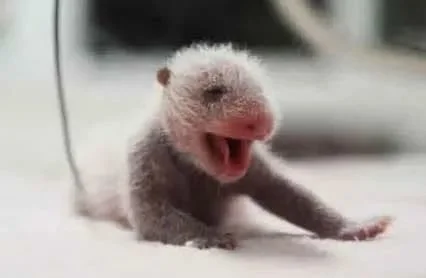 四川成都大熊貓繁育研究基地的孵化器中一隻大熊貓幼仔正張着嘴尖叫