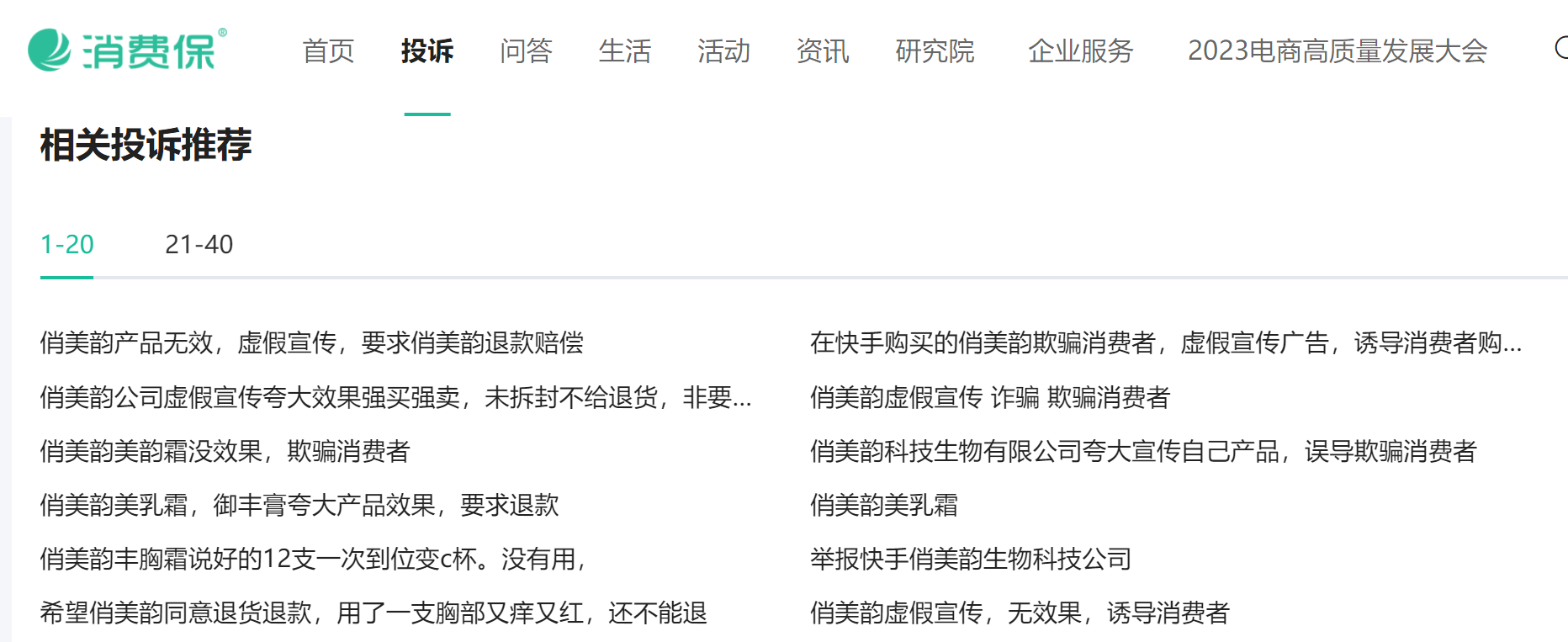 而在消費者互聯網投訴平台黑貓上,關於俏美韻的投訴有128條。要知道這個公司成立於2019年,只有四年時間。而投訴大多是反映高價購買產品卻毫無效果。