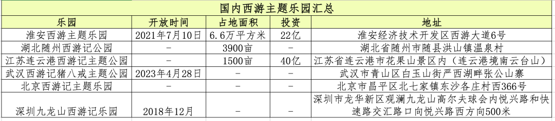 但與此同時,讓人諷刺的卻是國內其實早有淮安、隨州、武漢、北京、深圳等地打造有西遊樂園,只是多侷限於本地和附近省市範圍,知名度較低,影響力有限,遠遠未至遠近聞名的程度,與國民IP西遊記的高知名度形成了鮮明對比。