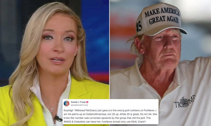 讓特朗普如此炸毛的原因,是他認為麥克納尼在節目中説,德桑蒂斯的民調支持率正在追趕特朗普。特朗普特意糾正説:我領先德桑蒂斯(Desantimonious) 34個百分點,不是25.雖然25已經很多了,但34更多。
