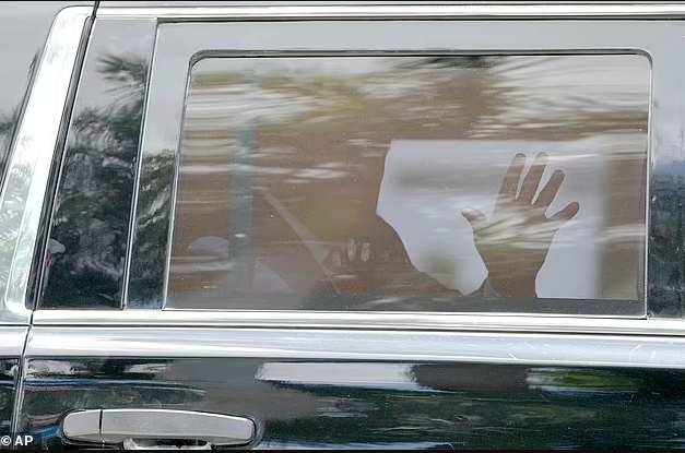 在其黑色SUV和警車沿着空曠的公路行進之前,他向在他的高爾夫球場外排隊的一羣支持者做了簡短的揮手。