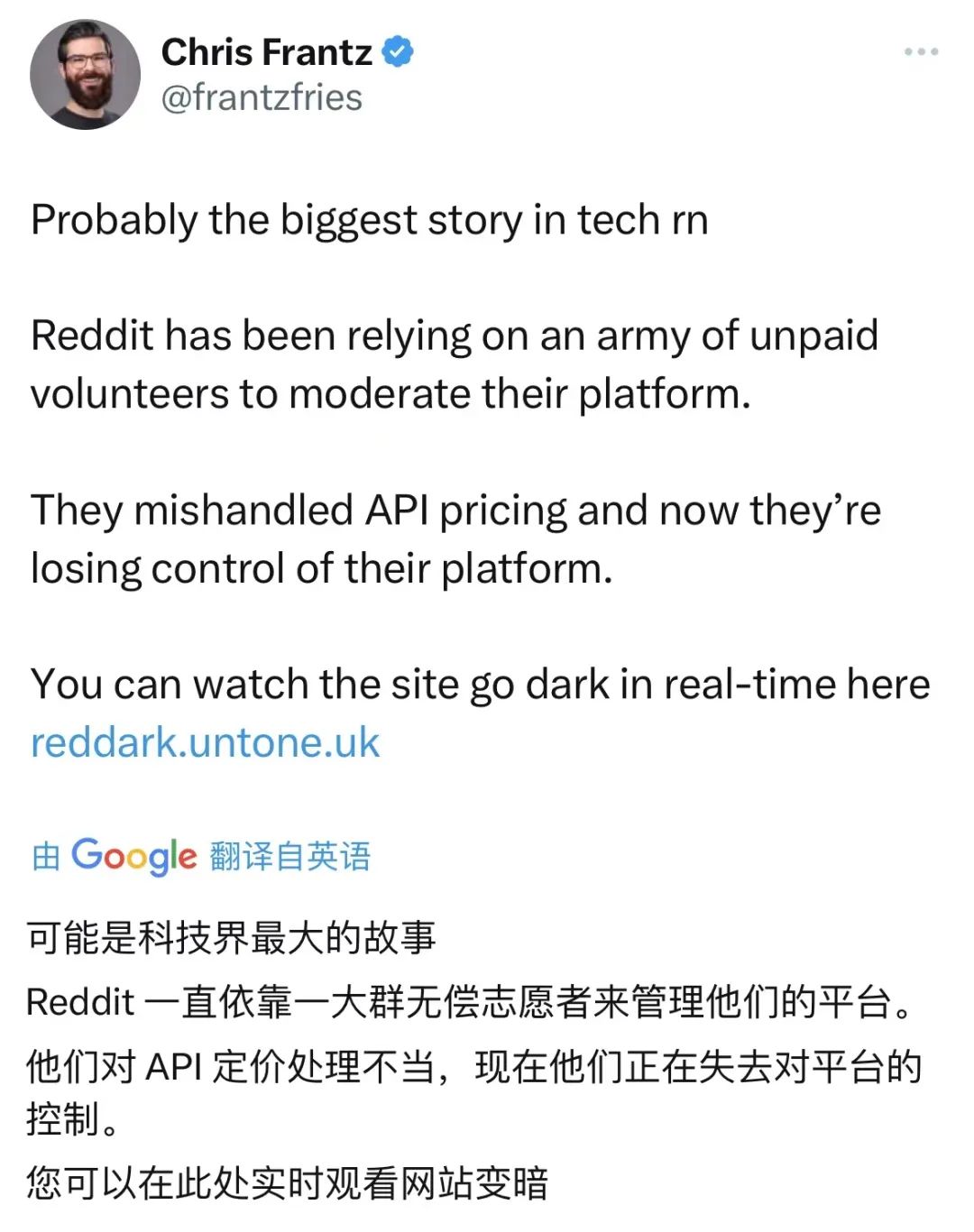 上千萬網友揭竿而起,在小組管理員的帶領下,自發“ 關閉 ”了 Reddit 上 7000 多個小組,直接把 Reddit 平台幹崩了。