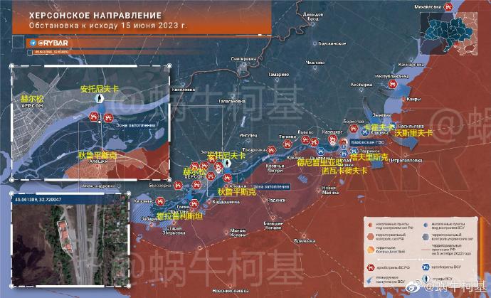 4、截至15日,卡霍夫卡大壩的損壞導致第聶伯河三角洲被淹沒,無法陸地作業