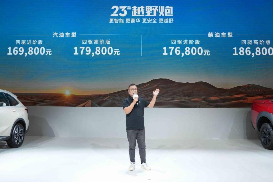 在本屆車展上,長城炮乘用休閒品類越野皮卡創新力作——2023款越野炮正式上市,汽油車型官方指導價16.98萬元-17.98萬元,柴油車型官方指導價17.68萬元-18.68萬元。